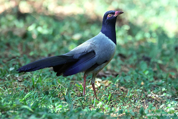 | Specification : | ปากแดงสด หนังรอบตาม่วงแกมชมพู ตาเหลือง หัว คอ อก และหางดำเป็นมัน ปีกและหลังสีเทา ท้องสีอ่อนกว่า แข็งและตีนแดงแกมชมพู เสียงร้อง : ก้องดัง พยางค์แรกสั้น "ปู๊ป ปู้-วุ้บ" และ "วู้ว" ดังไกล ลากเสียงเล็กน้อย ถิ่นอาศัยในพื้นที่ภาคเหนือตอนล่าง : ป่าดิบแล้ง ที่ราบถึงความสูง 1,000 เมตร มีรายงานการพบในพื้นที่อุทยานแห่งชาติน้ำหนาว เขตรักษาพันธุ์สัตว์ป่าตะเบาะ-ห้วยใหญ่ จังหวัดเพชรบูรณ์ และอุทยานแห่งชาติทุ่งแสลงหลวง จังหวัดพิษณุโลก แหล่งอ้างอิง : คู่มือดูนกหมอบุญส่ง เลขะกุล นกเมืองไทย และหนังสือนกในเมืองไทย เล่ม 2 รศ.โอภาส ขอบเขตต์ |